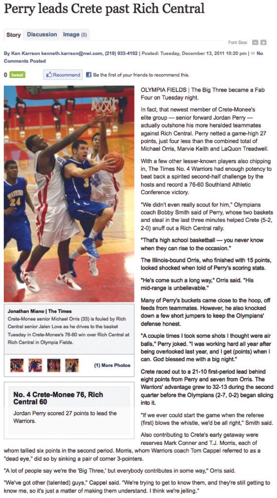 She may be the little sister but there's NOTHING little about her game. A reliable shooter, lockdown perimeter defender & competent & skillful ball handler, she's possibly best known for her on court leadership. She was the anchor to the most successful regular season team (male or female) in Crete-Monee's basketball history helping usher the lady warrior to a record of 25-5!